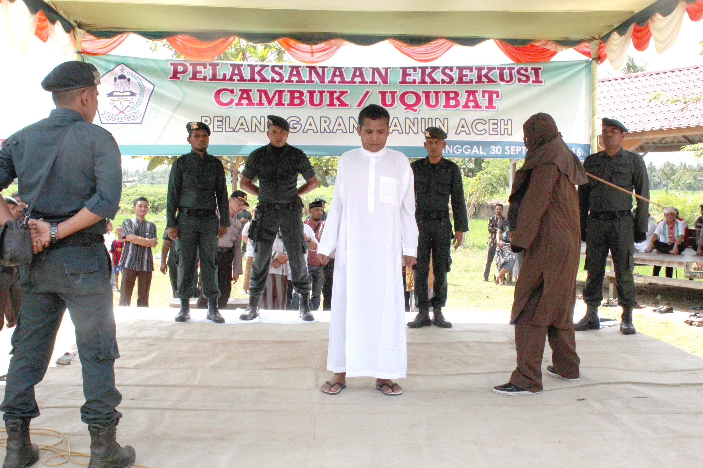 Kejaksaan Negeri Aceh Utara, Jum'at (30-09-2016) melaksanakan eksekusi hukuman cambuk/'uqubat berdasarkan putusan Mahkamah Syar'iyah Lhoksukon yang telah berkekuatan hukum tetap terhadap para terpidana atas nama Mirza Bin M. Saleh, Rosleini Binti Muhammad, Abdul Muthaleb Bin Yunus dan Muzakir Bin M. Sufi.