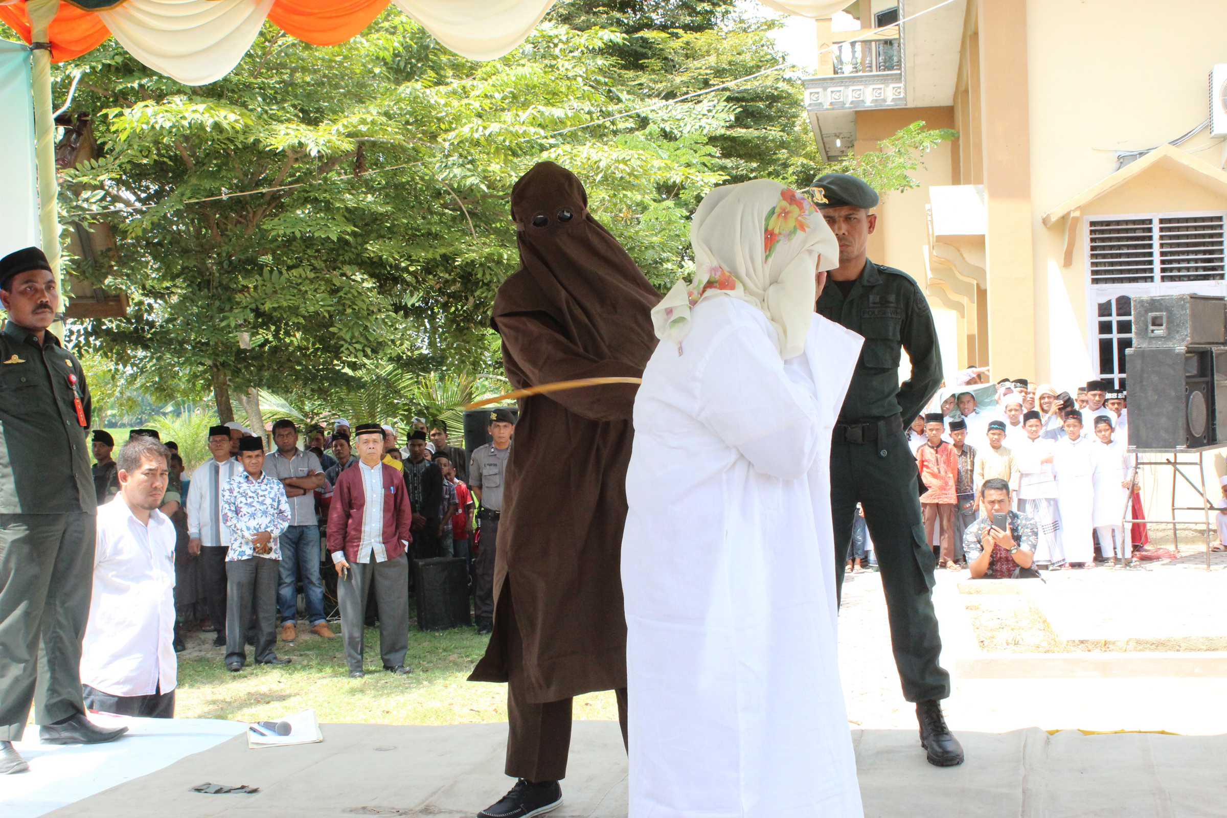 Kajari Aceh Utara JABAL NUR, SH.,MH melalui Kasi Tindak Pidana Umum Fahmi Jalil, SH. menjelaskan bahwa hukuman cambuk/'Uqubat dilaksanakan sesuai putusan Mahkamah Syar'iyah Lhoksukon terhadap terpidana atas nama Mirza Bin M. Saleh dan Rosleini Binti Muhammad melanggar pasal 25 ayat (1) Qanun Nomor 6 Tahun 2014 tentang hukum jinayah dengan 'Uqubat/cambuk di depan umum masing-masing sebanyak 15 (lima belas) kali, Muzakir Bin M. Sufi melanggar pasal 20 jo. pasal 19 jo. pasal 18 Qanun Nomor 6 Tahun 2014 tentang hukum jinayah dengan 'Uqubat/cambuk di depan umum sebanyak 9 (sembilan) kali, dan Abdul Muthlaeb Bin Yusuf melanggar pasal 20 jo. pasal 19 jo. pasal 18 Qanun Nomor 6 Tahun 2014 tentang hukum jinayah dengan 'Uqubat/cambuk di depan umum sebanyak 4 (empat) kali.