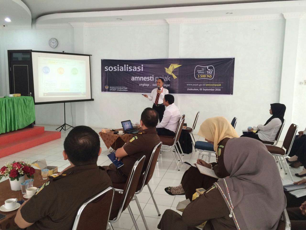 Pihak Kejaksaan Negeri Aceh Utara pada hari Senin, tanggal 5 September 2016 sekira pukul 10.00 wib bertempat di Ruang Aula Kantor Kejaksaan Negeri setempat telah melaksanakan kegiatan Sosialisasi Tax Amnesty (Pengampunan Pajak) bagi seluruh pejabat (Para Kepala Seksi/Kepala Sub Bagian, serta para Kepala Urusan) dan seluruh pegawai Kejaksaan Negeri Aceh Utara. Acara tersebut dilaksanakan bekerjasama dengan Kantor Pelayanan Pajak Pratama Lhokseumawe dan KP2KP Lhoksukon.